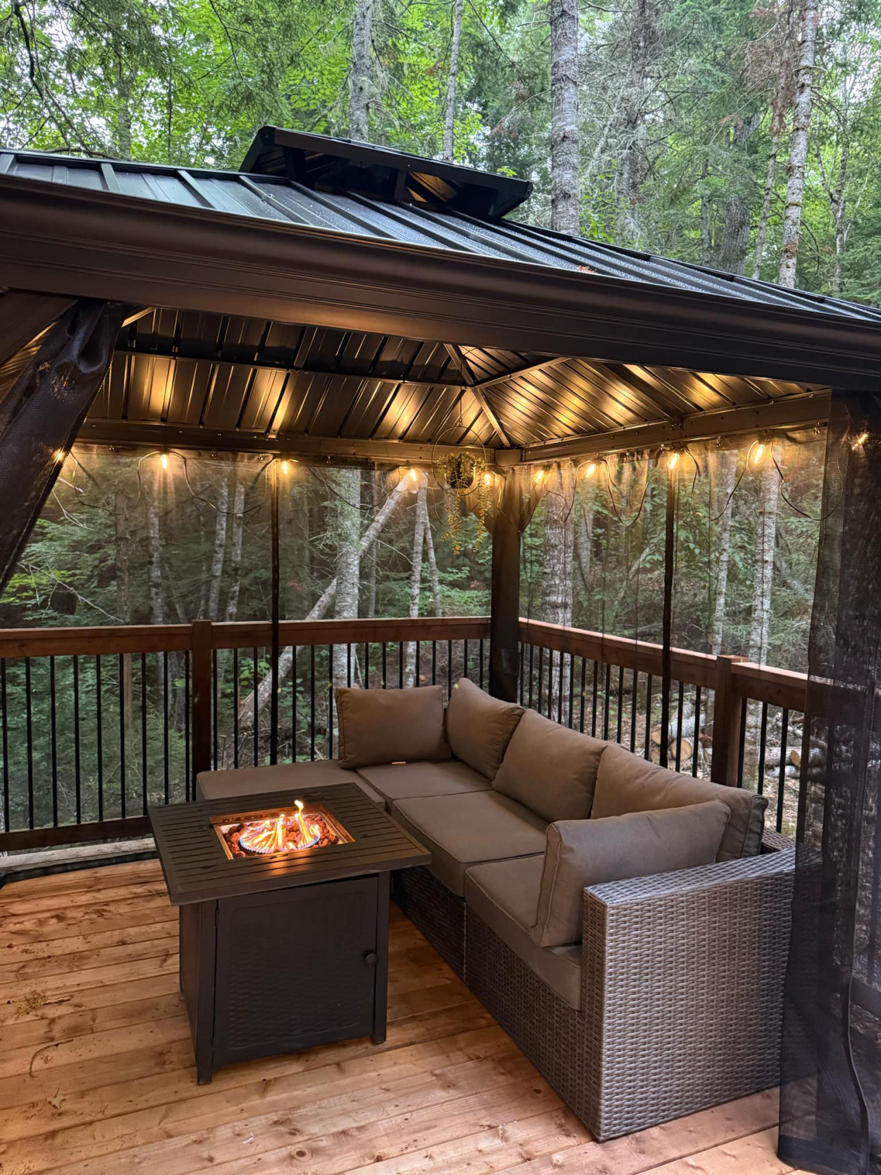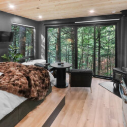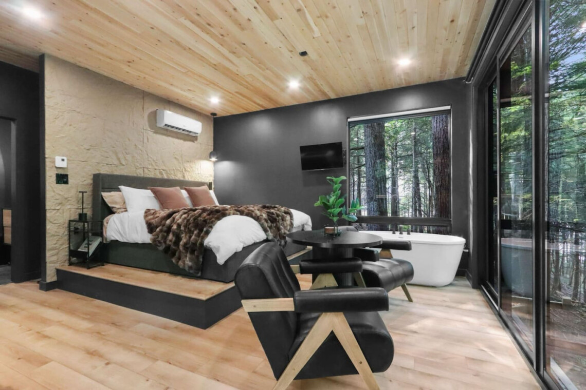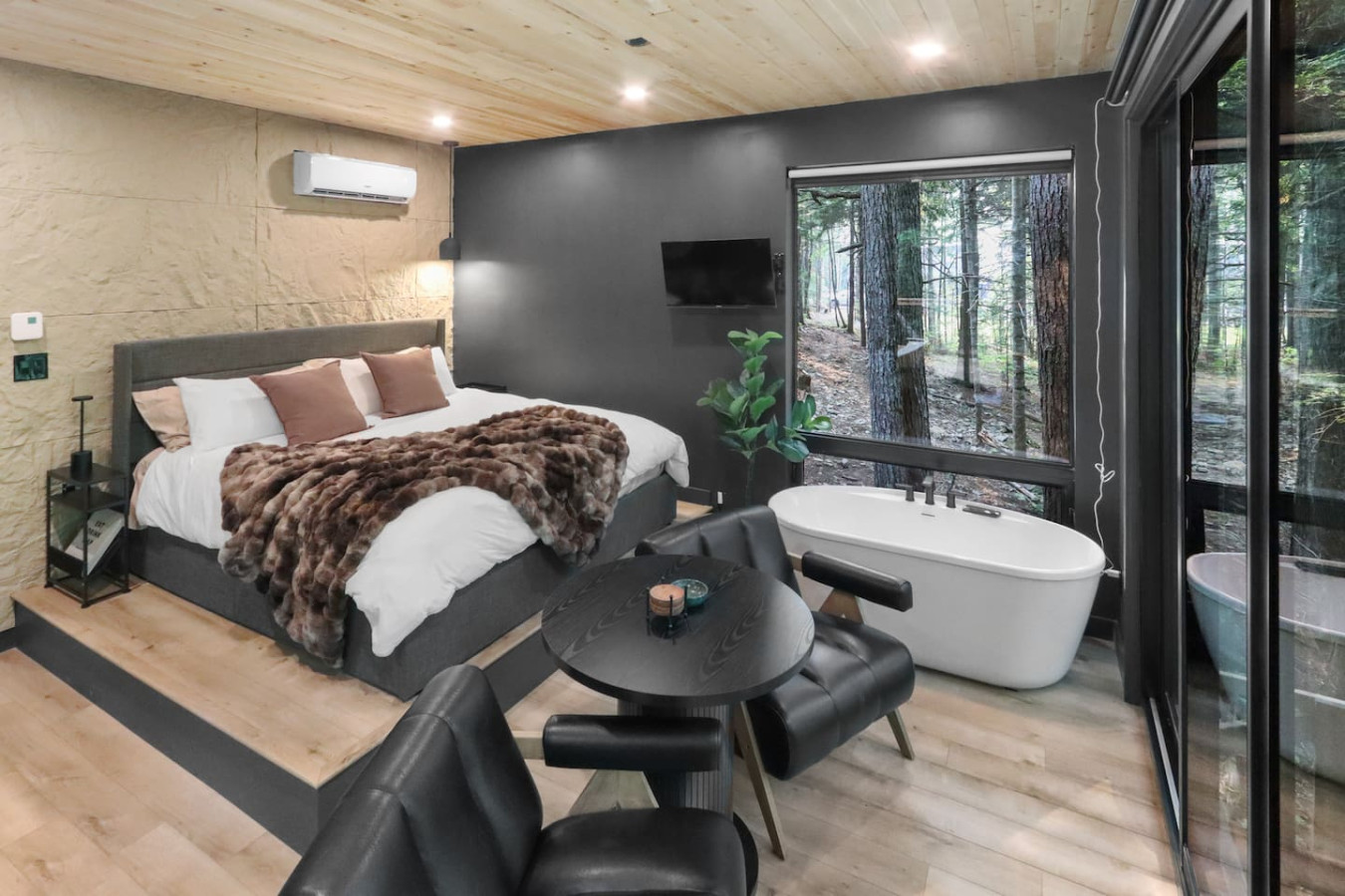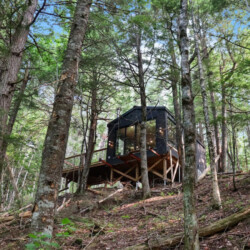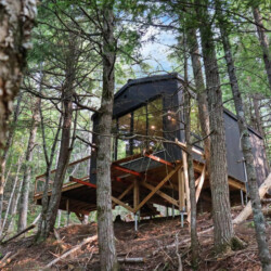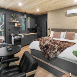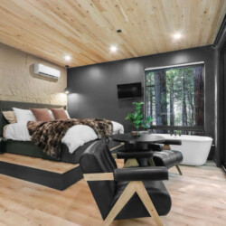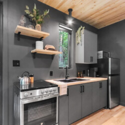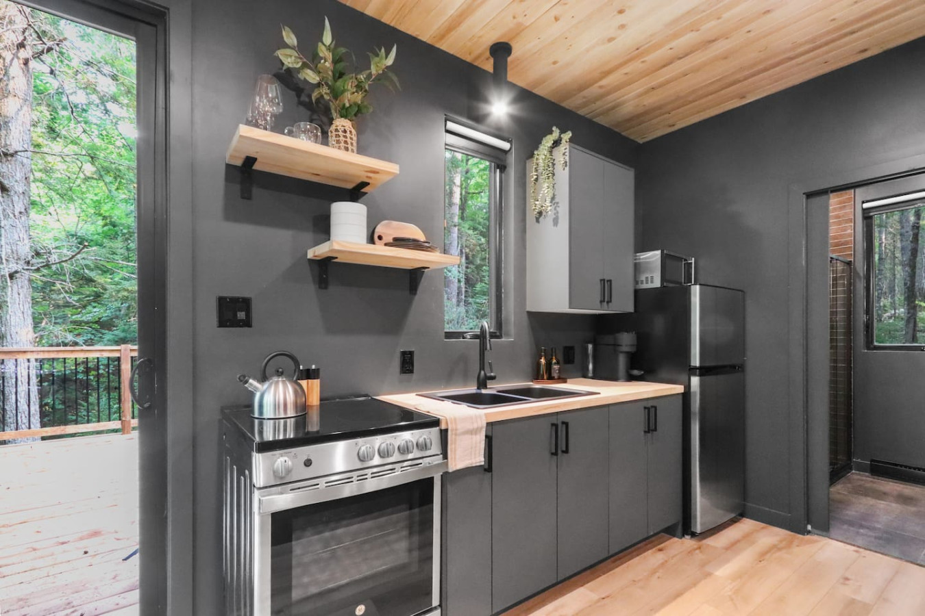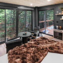 Tucked in the woods above a babbling brook, this brand-new tiny home studio is a nature lover’s dream. Enjoy a king bed, full kitchen, bathtub, and cozy wood stove. Floor-to-ceiling windows showcase nature year-round. Relax on the deck, gather at the fire pit, or stroll down to the Richibucto River where it opens to your own little beach—perfect for a swim. A truly special spot to unwind and connect.