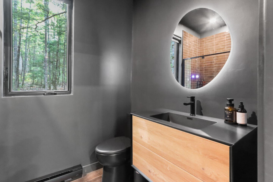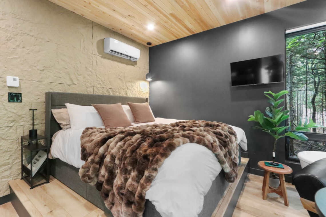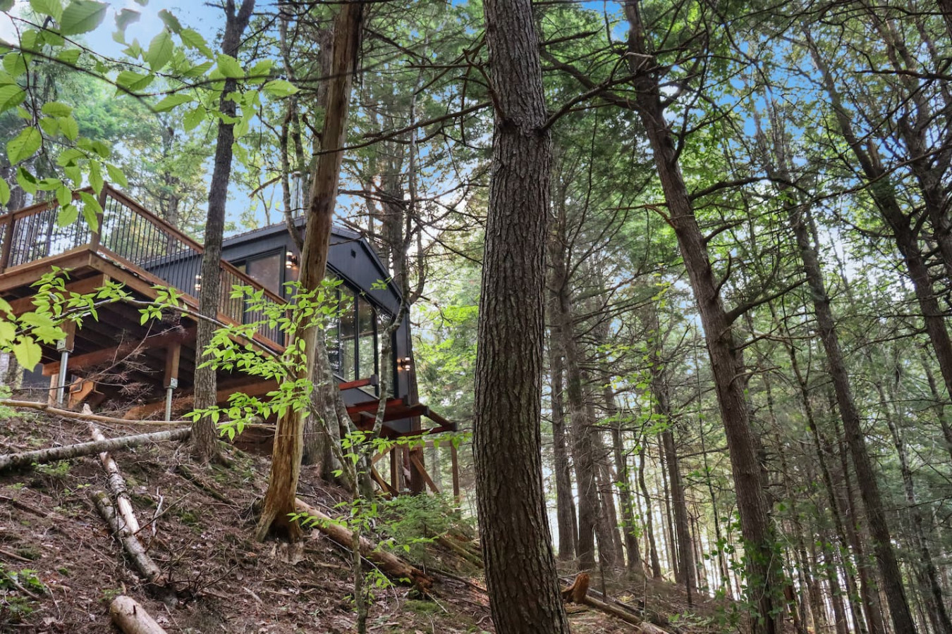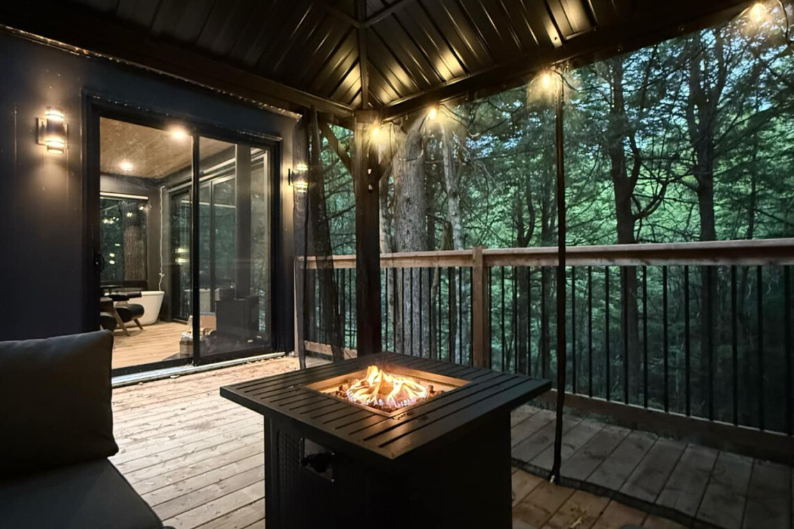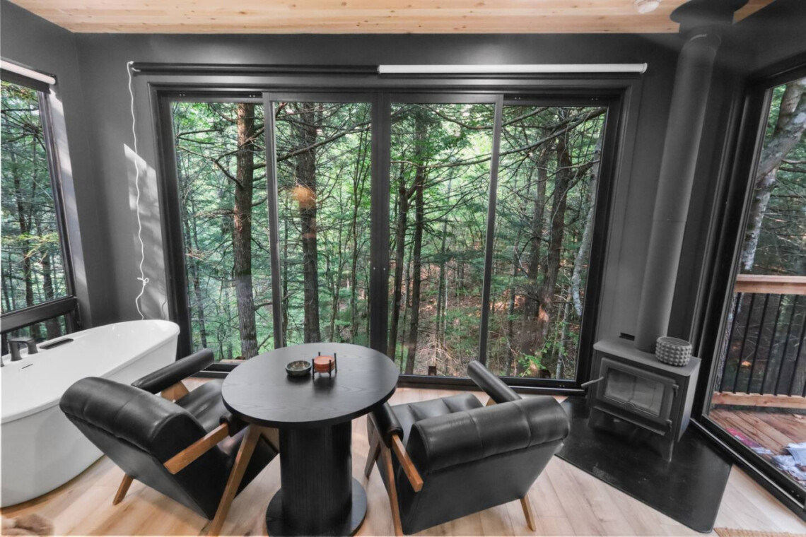 Tucked in the woods above a babbling brook, this brand-new tiny home studio is a nature lover’s dream. Enjoy a king bed, full kitchen, bathtub, and cozy wood stove. Floor-to-ceiling windows showcase nature year-round. Relax on the deck, gather at the fire pit, or stroll down to the Richibucto River where it opens to your own little beach—perfect for a swim. A truly special spot to unwind and connect.