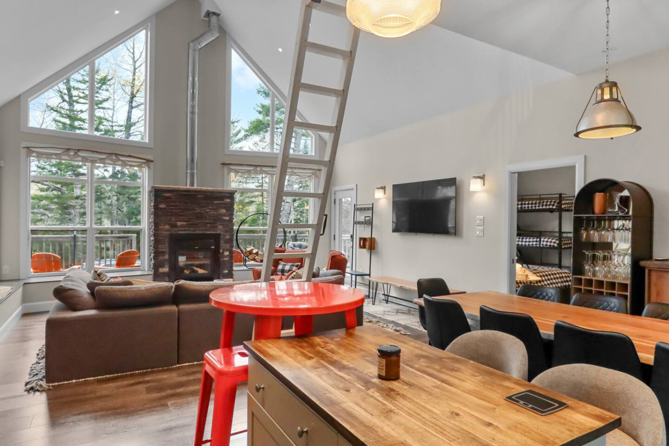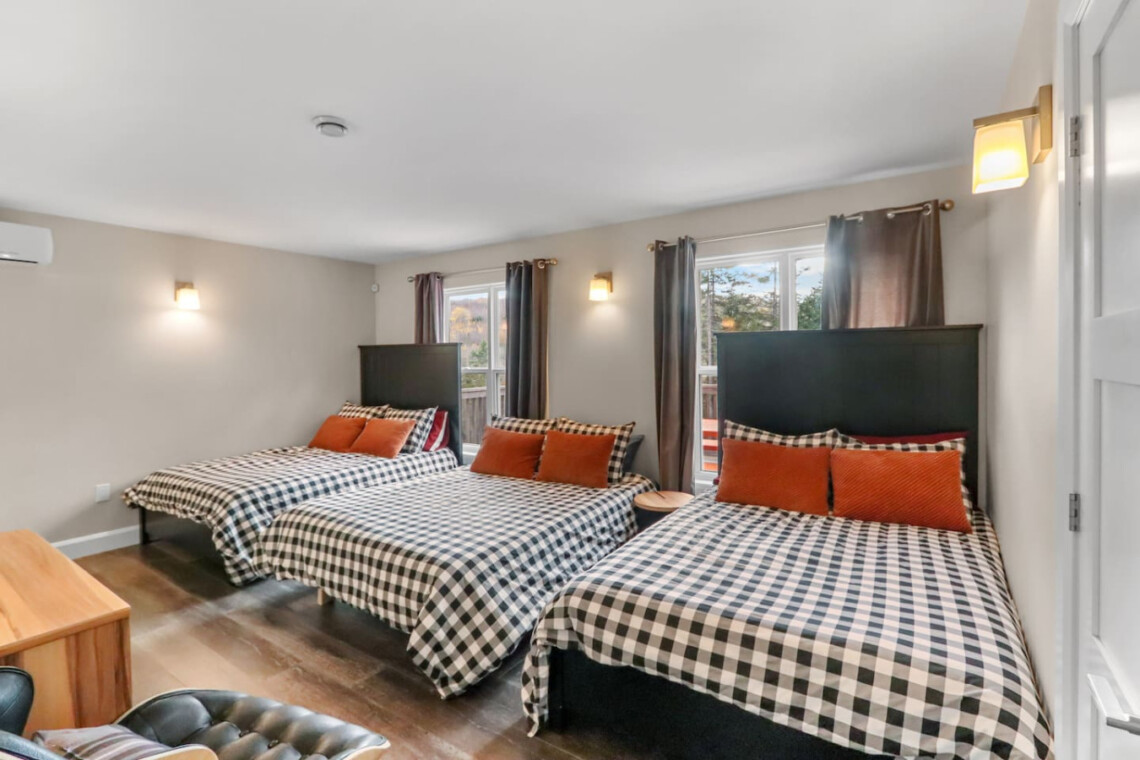 Escape to this spacious 3-bedroom retreat just 8 minutes from Poley Mountain! With 8 beds, an open-concept living room and kitchen, cozy fireplace, and huge windows with beautiful views, it’s perfect for groups and families. Relax on the large deck with plenty of seating, soak in the hot tub, or gather around the firepit. Enjoy total privacy with no neighbours—your own peaceful mountain getaway after a day on the slopes!